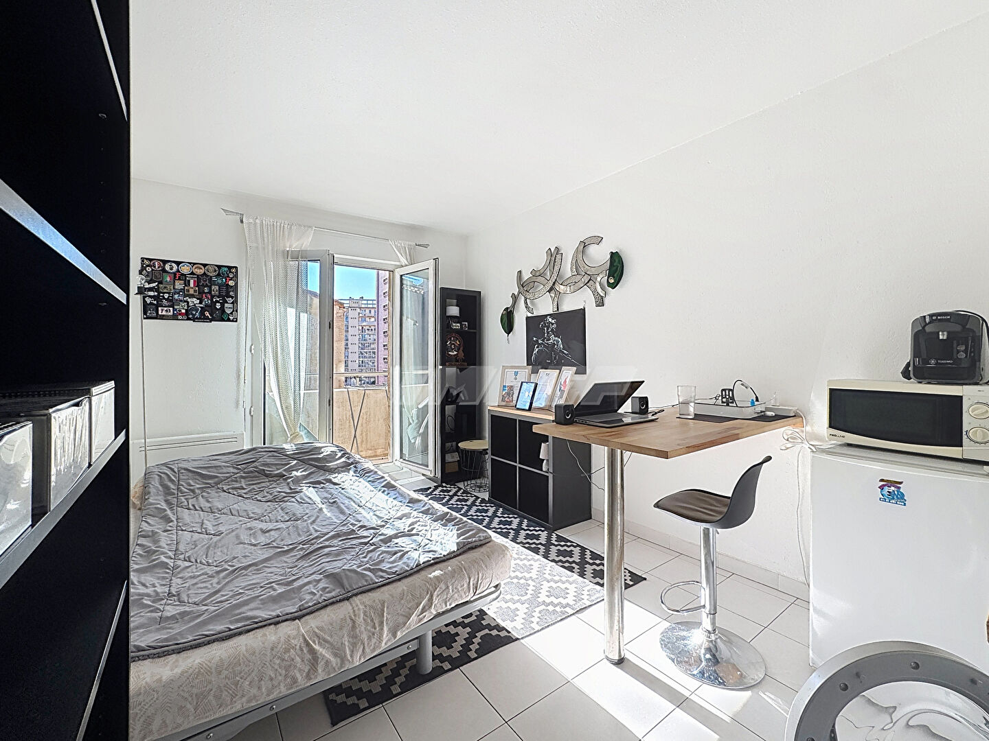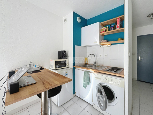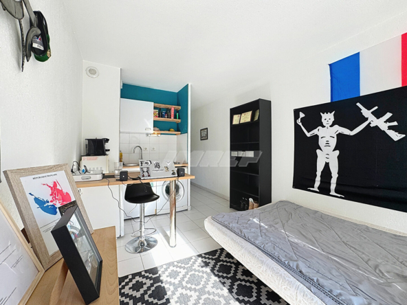 Studio en très bon état, dans un immeuble récent, composé d’une pièce principale avec cuisine équipée, donnant sur un balcon avec double vitrage.