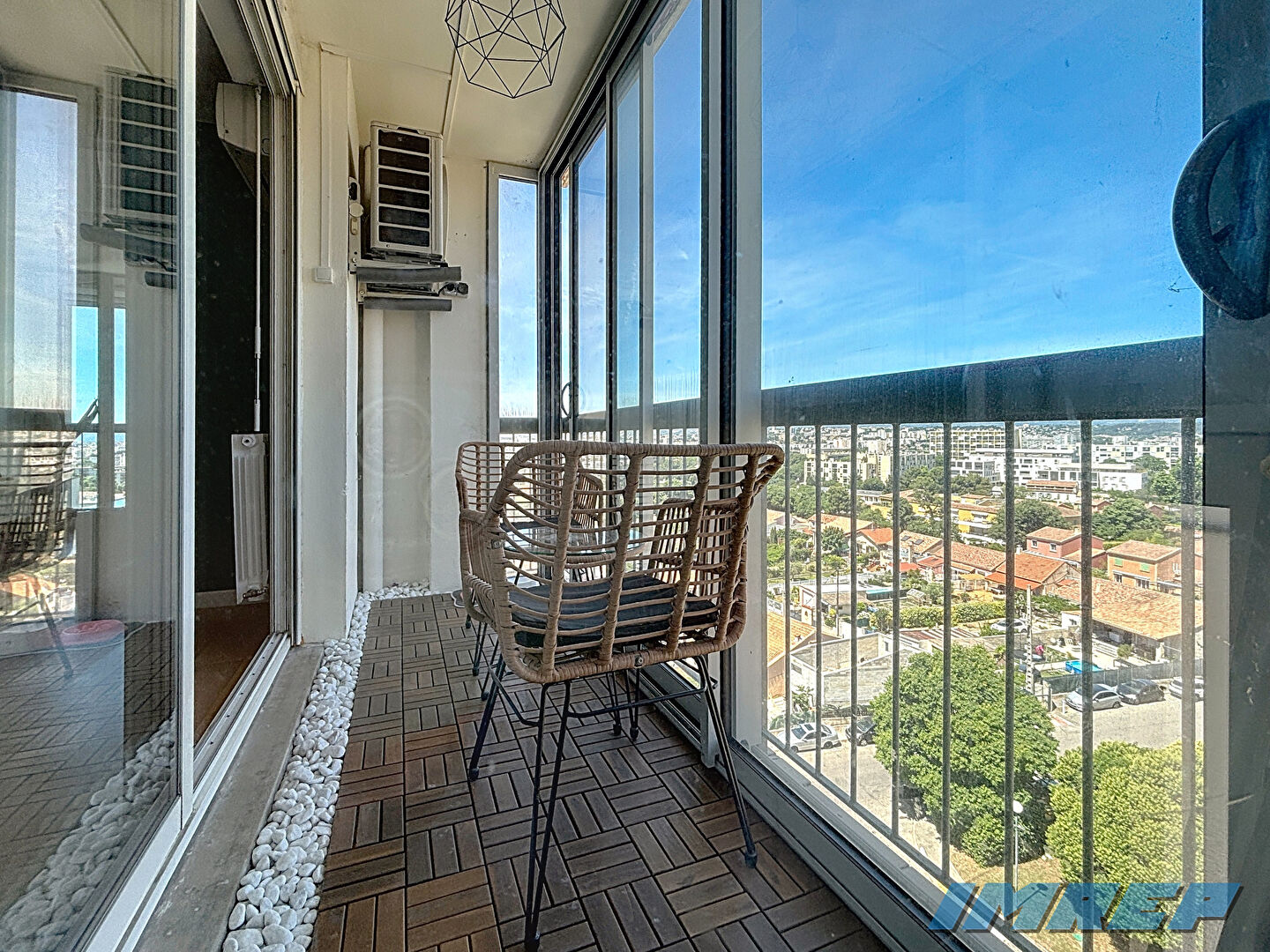 L’appartement est traversant, lumineux et offre une belle vue dégagée. Il est équipé d’une climatisation.