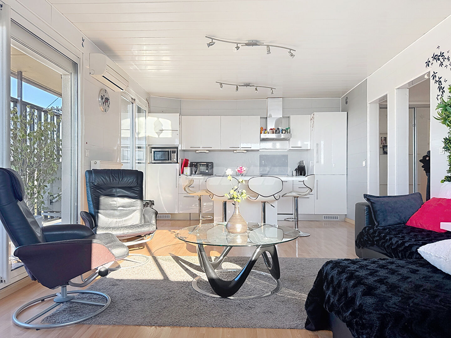 Bel appartement en dernier étage de type 4, en très bon état, entièrement climatisé avec stores électriques, il se compose d’un hall d’entrée qui dessert la cuisine ouverte donnant sur un spacieux salon – salle à manger, longé par un grand balcon offrant une magnifique vue sur ville et la mer.