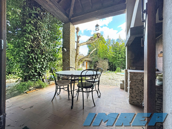 Le séjour, la salle à manger et la cuisine donnent accès à la terrasse et à sa piscine.
