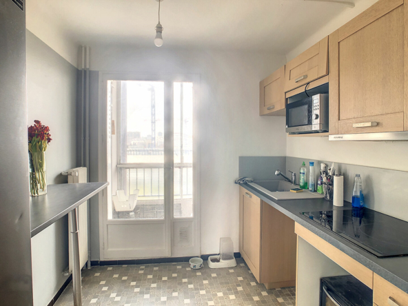 Cet Appartement situé au 5ème étage avec ascenseur est composé d’une entée, d’un séjour lumineux, d’une cuisine, 2 chambres, une salle de bain et WC séparés .