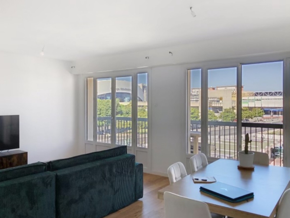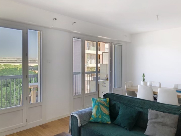 A louer, beau T3 entièrement rénové et meublé, situé dans une résidence calme du Parc Dromel. L’appartement se compose d’un grand séjour lumineux ouvrant sur un balcon, d’une cuisine équipée, de deux chambres, d’une salle de bain moderne et d’un second balcon. Proche métro, commerces et écoles.